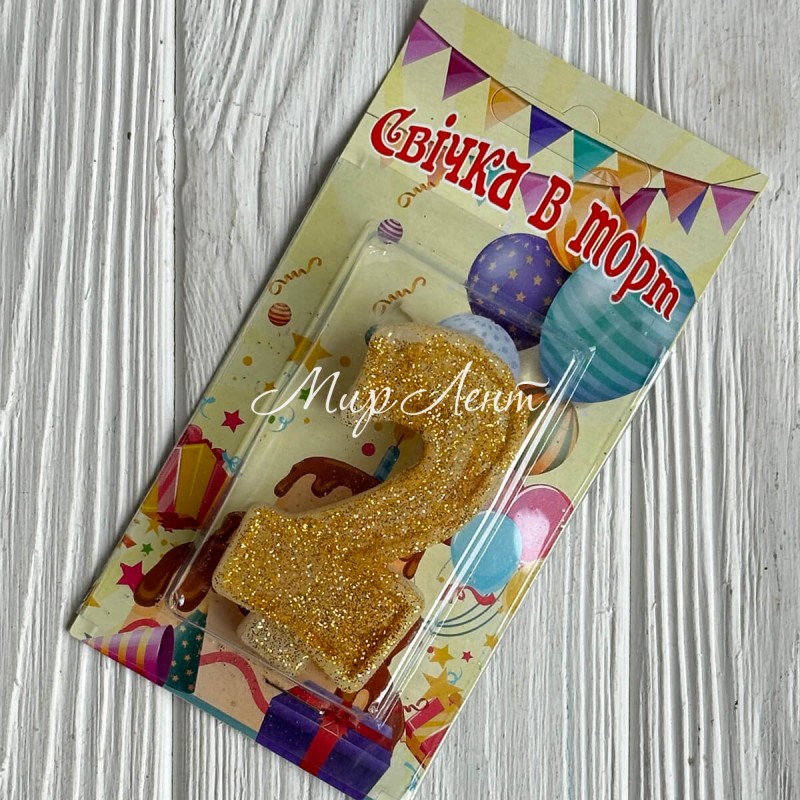 Свічка для торту (золото), 7,8х3,8 см, цифра 2, шт.