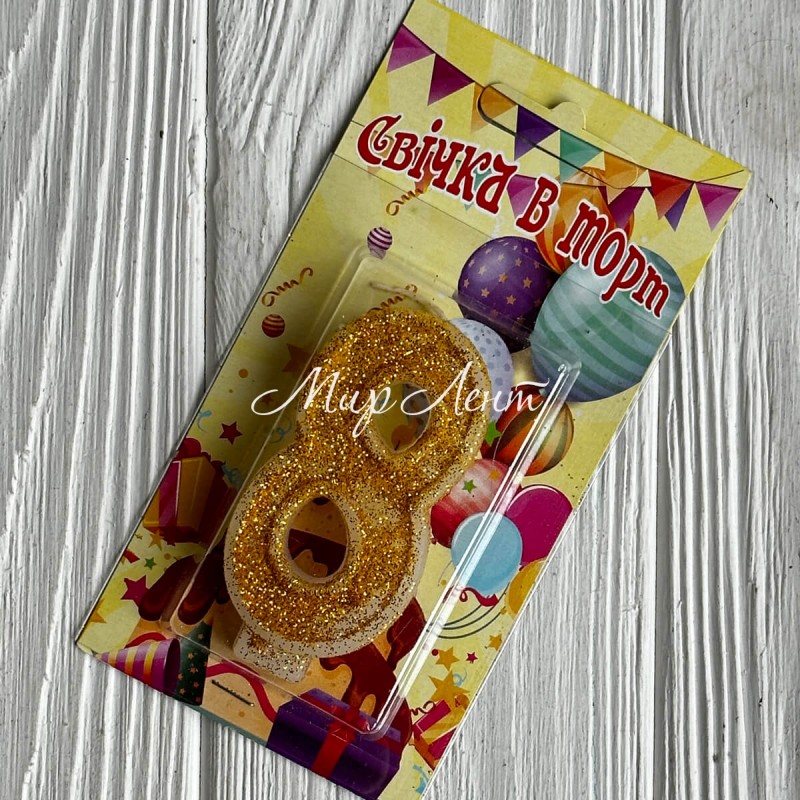 Свічка для торту (золото), 7,8х3,8 см, цифра 8, шт.
