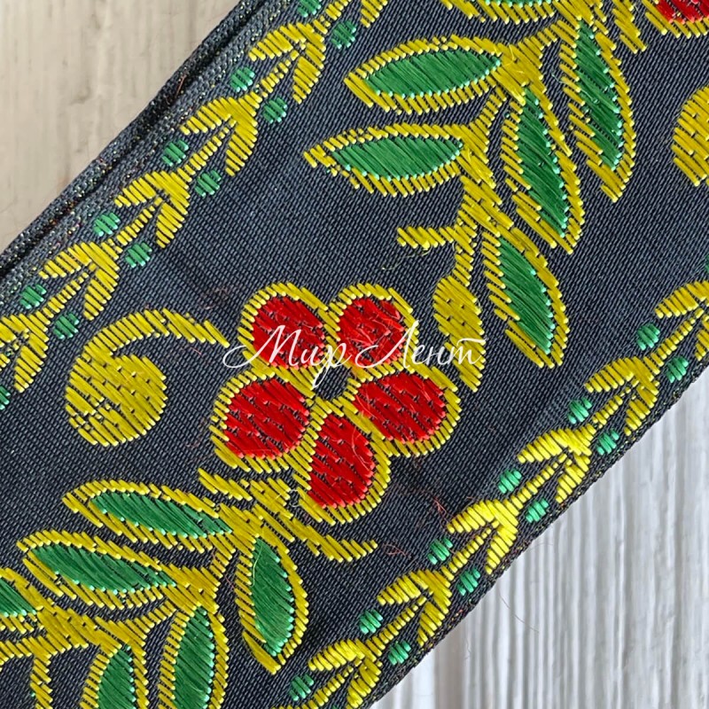 Тісьма вишиванка, 5 см, горобина на чорному, рулон 9 м