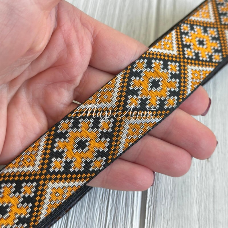 Тісьма вишиванка (візерунок з ромбів), 2,8 см, темно-жовта з чорним, рулон 9 м