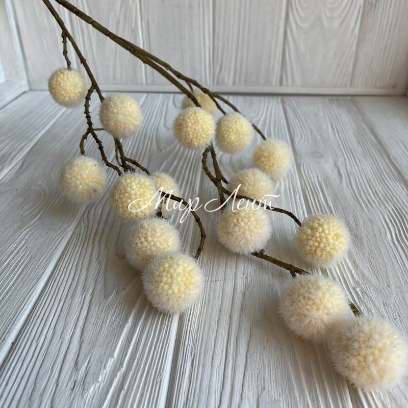Ветка с пухнастыми шариками, 65 см, молочный, шт.