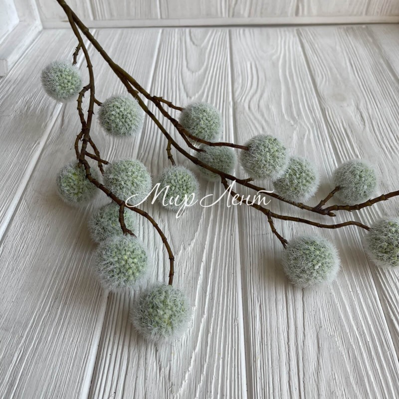 Ветка с пухнастыми шариками, 65 см, светло-зеленый, шт.