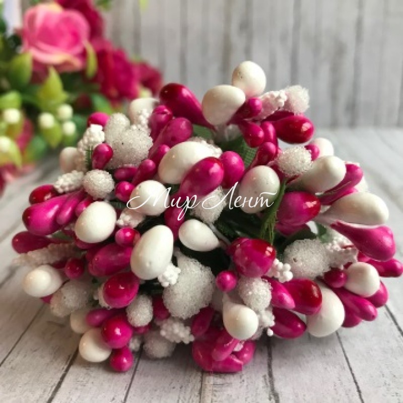Веточка двухцветная, бело-малиновый, упаковка 12 пучков (144 шт.)