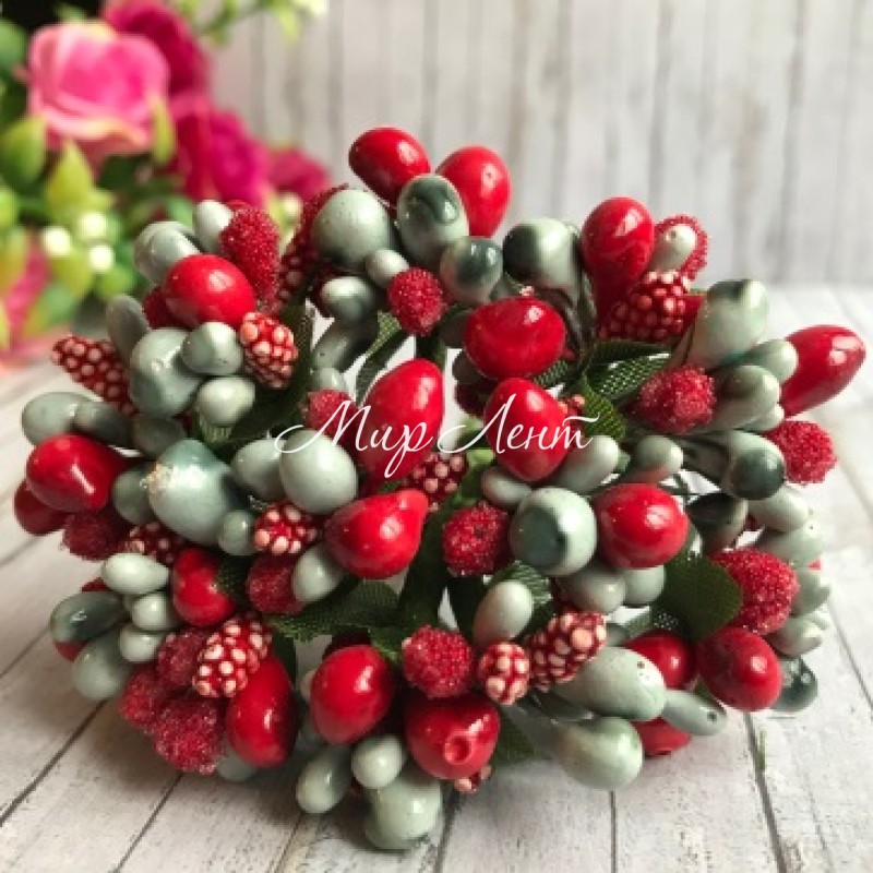 Веточка двухцветная, красно-серый, упаковка 12 пучков (144 шт.)