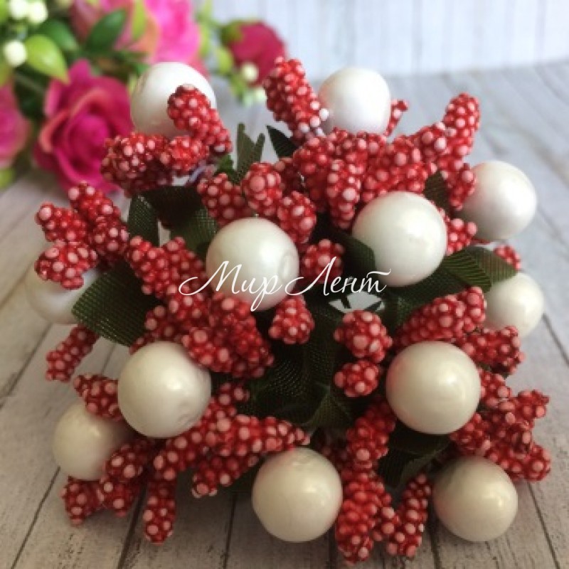 Веточка красная с белыми ягодками, упаковка 12 пучков (144 шт.)