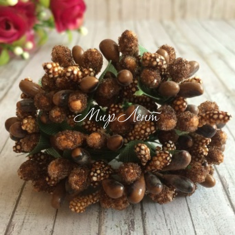 Веточка с тычинками, коричневая, упаковка 144 шт.