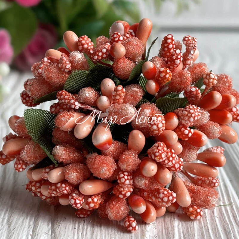 Веточка с тычинками, оранжево-темно-персиковая, упаковка 144 шт.
