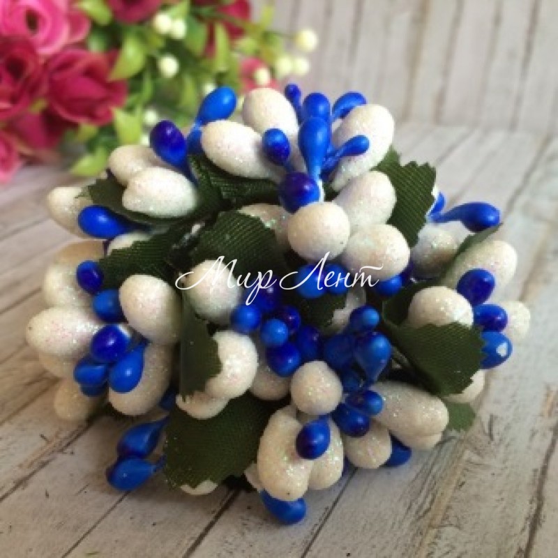 Веточка Wow, белый перламурт с синим, упаковка 12 пучков