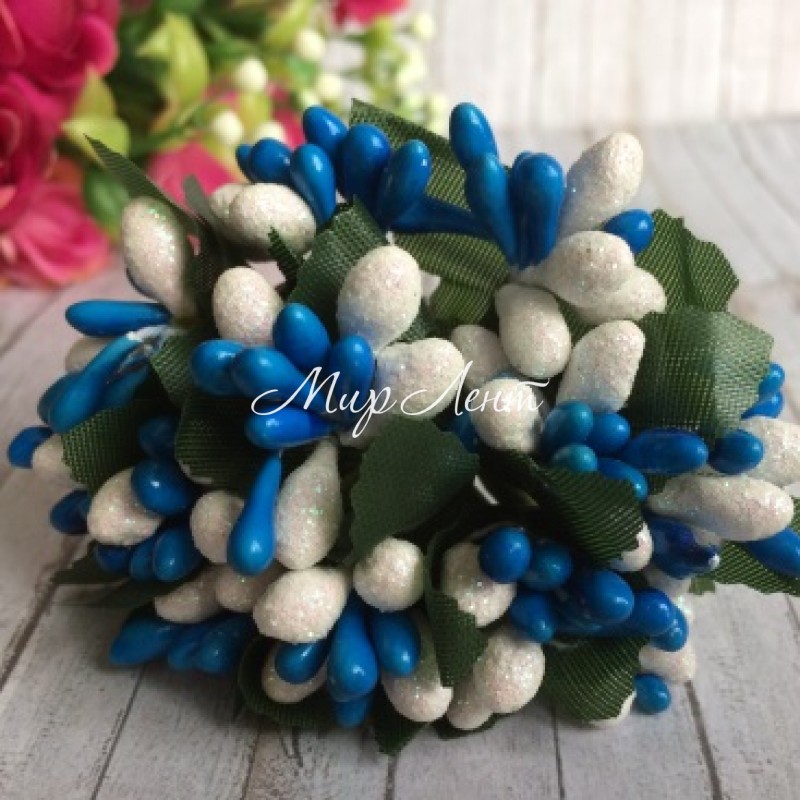Веточка Wow, белый перламурт с темно-бирюзовым, упаковка 12 пучков