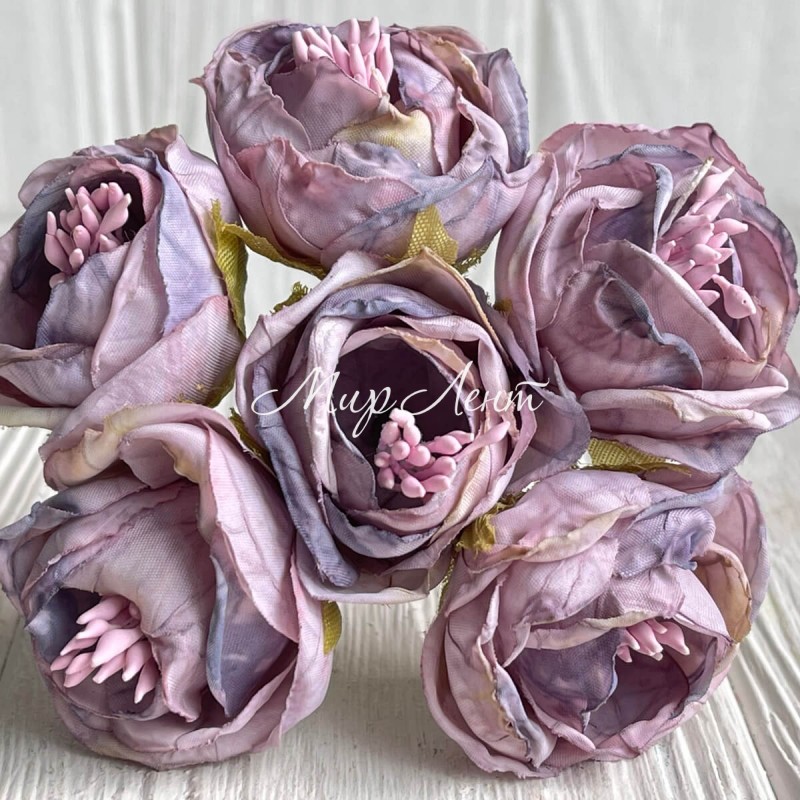 Винтажная роза с тичинками, 3,5 см, лилово-розовая, упаковка 42 шт.