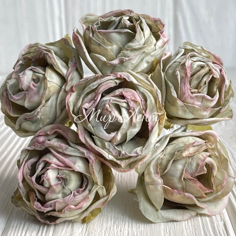 Винтажная роза, 3,5 см, оливково-мятная, упаковка 42 шт.