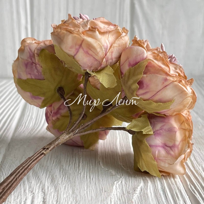 Винтажная роза с тичинками, 3,5 см, бежево-розовая, упаковка 42 шт.