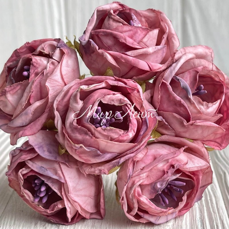 Винтажная роза с тичинками, 3,5 см, розово-пудровая, упаковка 42 шт.