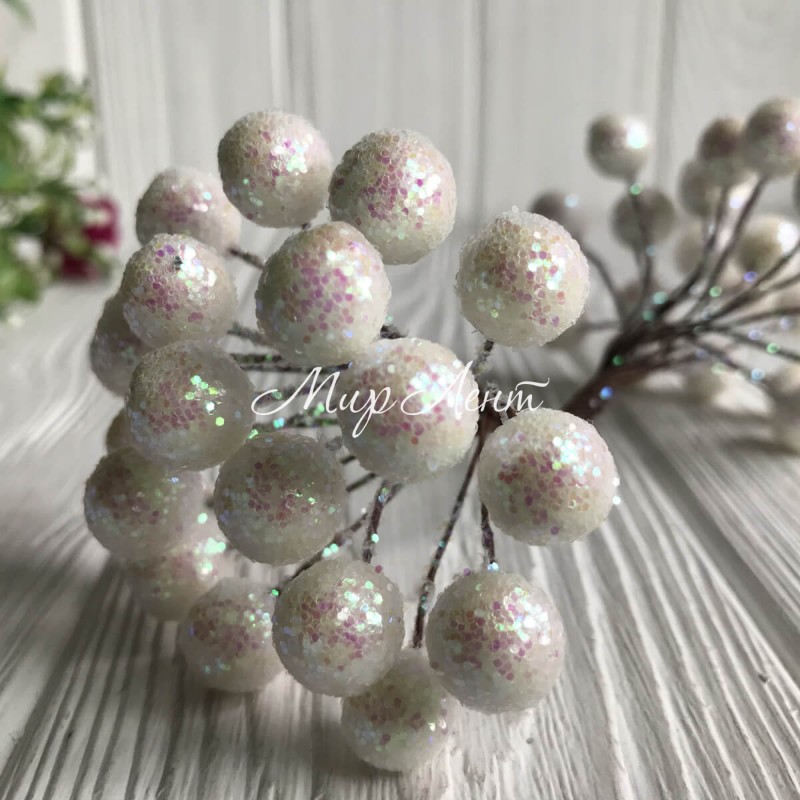 Ягодки с блестками, 12 мм, белый, упаковка 400 шт.