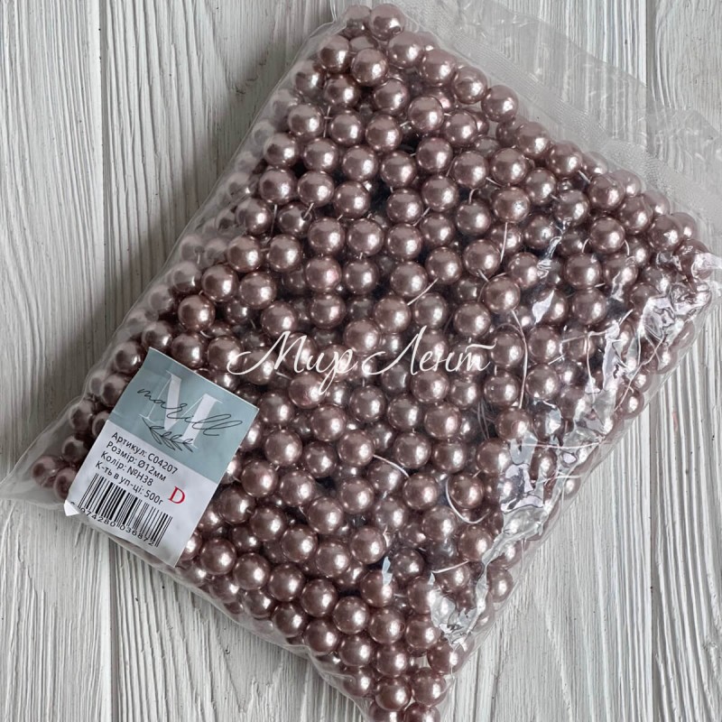 Жемчуг на нити Vip, 12 мм, кофейно-серый, упаковка 500 г
