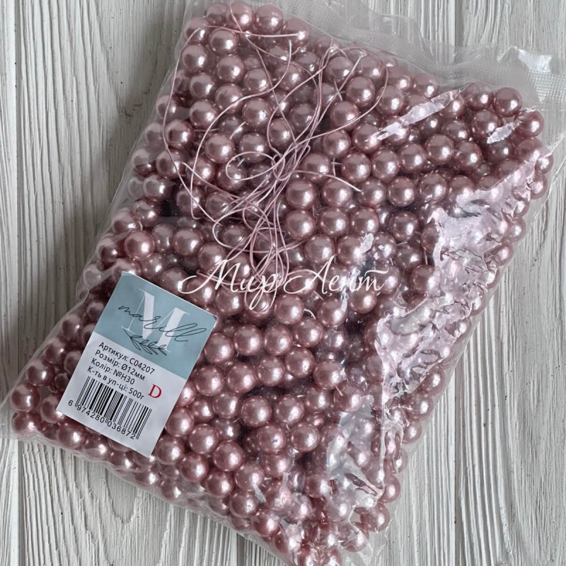 Жемчуг на нити Vip, 12 мм, пыльная роза, упаковка 500 г