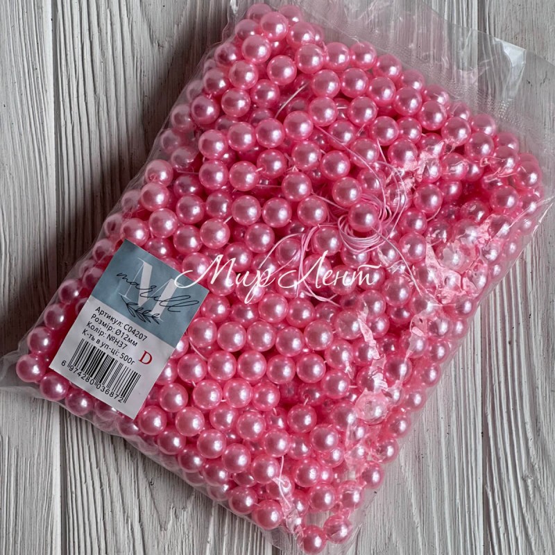 Жемчуг на нити Vip, 12 мм, средне-розовый, упаковка 500 г