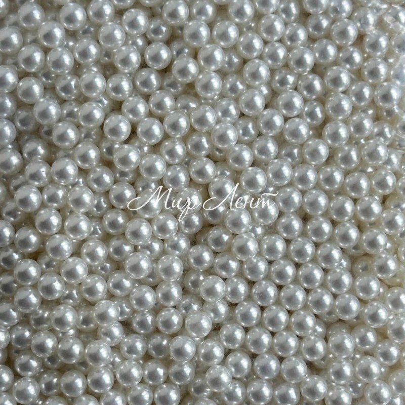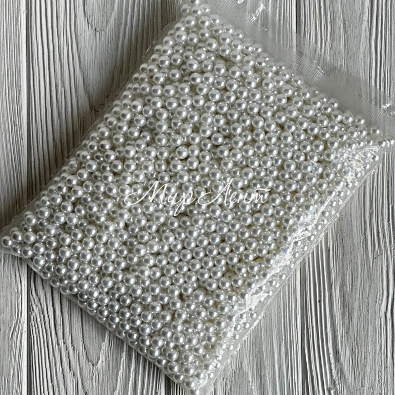 Жемчуг (пластик) для установки на прессе (без отверстия), 6 мм, белый, упаковка 500 грамм